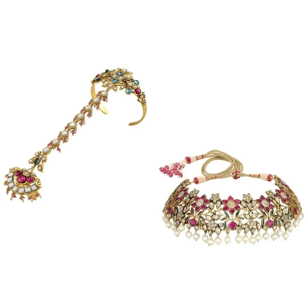 Tanishq則吸收了伊斯蘭教藝術的冷靜,更偏古典和端莊,因為專為婚禮設計,所以在顏色的選取上偏向傳統。
