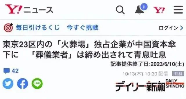 因為東京火葬場已經被中國資本承包了。