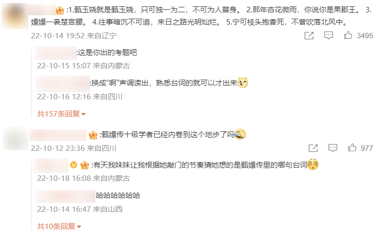 除非是每天把甄嬛傳台詞捲進煎餅果子,吃進肚子裏,才答得出來。