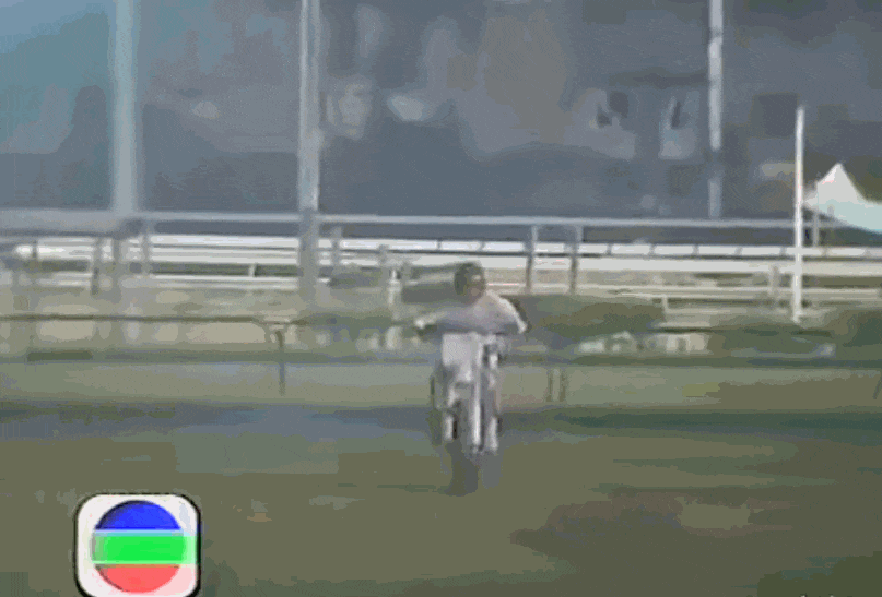 當天最驚險的項目,還要屬柯受良騎摩托車飛躍人牆。最危險的不是挑戰騎車飛躍的他,而是在下面作為人肉障礙物的藝人。