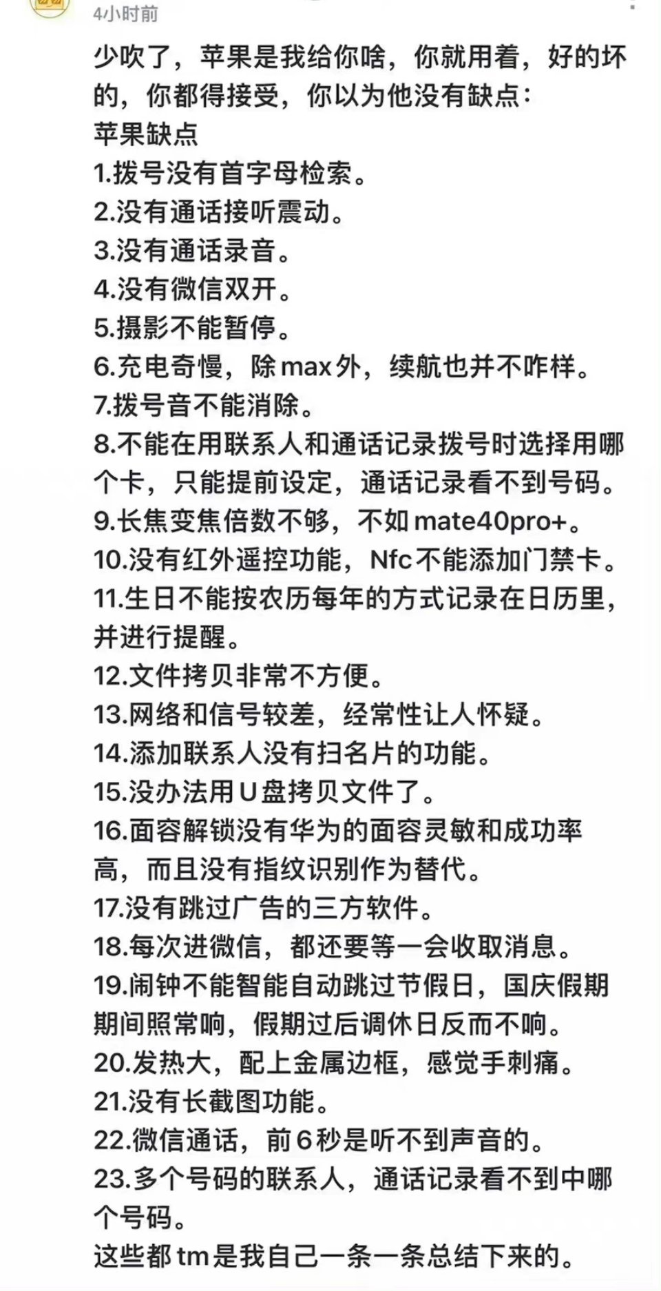 和安卓的相比,蘋果ios系統在快捷操作、懸浮窗、分屏協作等功能方面,落後幅度比較大。安卓手機很多種的屏幕快捷操作已經成為常態了。特別是應用雙開、長截圖、錄音等,蘋果用户已經期待很久了,希望蘋果公司能聽一聽用户的心聲。