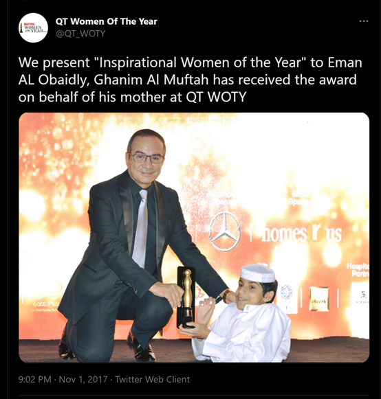事實上,全球互聯網上有關加寧父母的資料少之又少,能夠確定的只有他們的名字,穆罕默德·阿爾·穆夫塔(Mohammed Al-Muftah,父)和伊曼·奧白迪麗(Eman Al-Obaidli,母)。而在阿拉伯世界中,穆罕默德和伊曼又是極其尋常的兩個名字。通過慈善事業這條線索,我們才能儘可能地還原了一部分加寧的家庭情況。