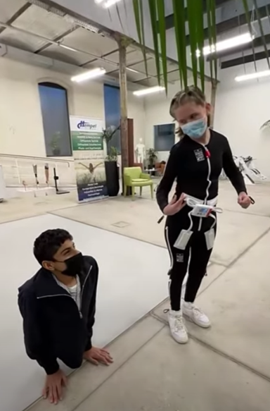圖片根據加寧的描述,Mariam(右)穿上了Molli Suit之後步行速度最高可比原來快上35%。