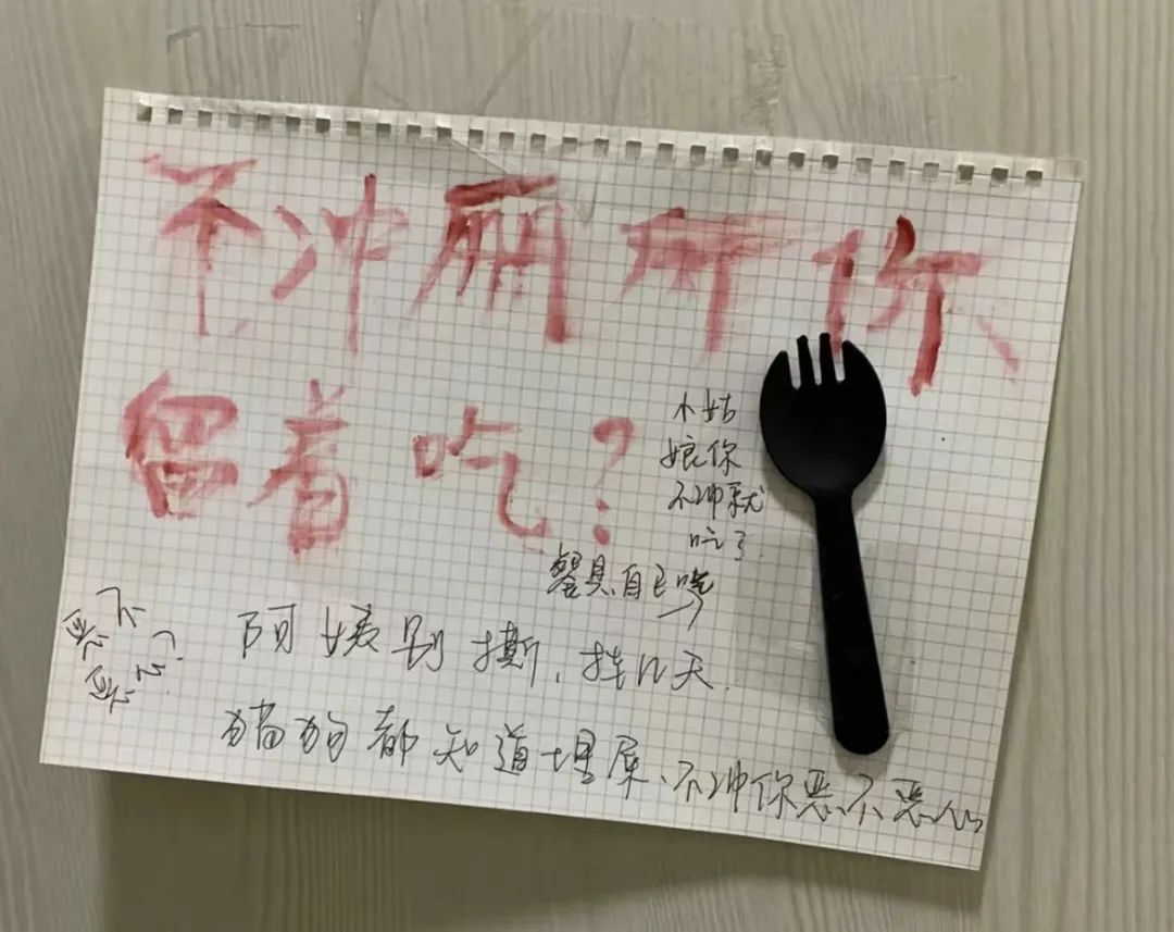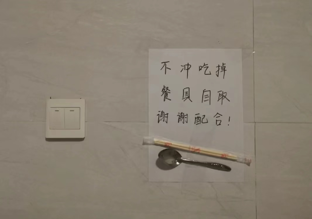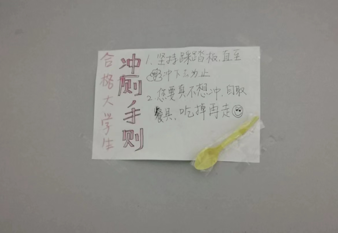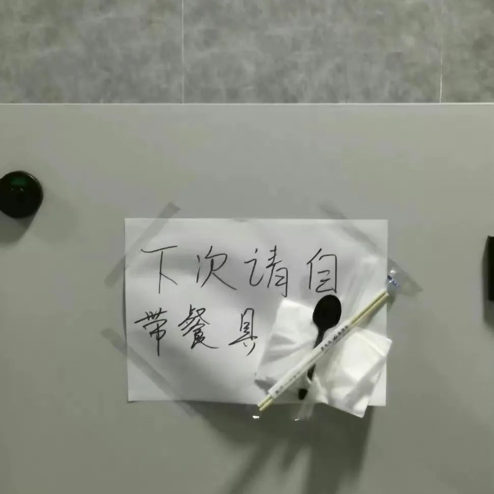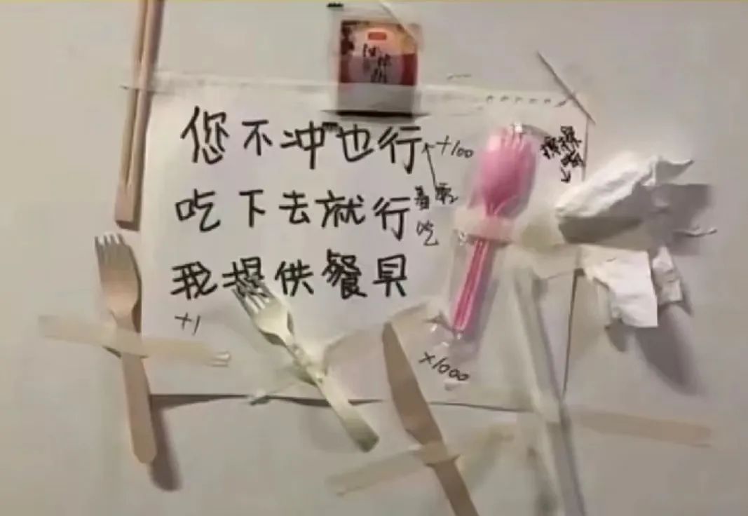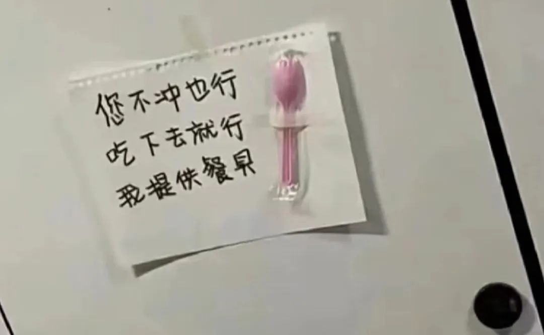 一張手寫標語,一份叫外賣時多要的餐具,構成了一道全新的公廁風景線。
