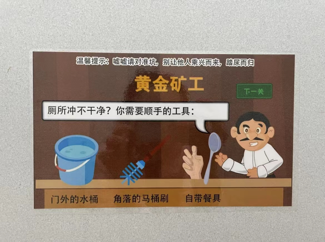 後來,我從小聰那裏得到消息,貼了標語的隔間被打掃乾淨後,那副餐具一直守護着那個蹲坑。