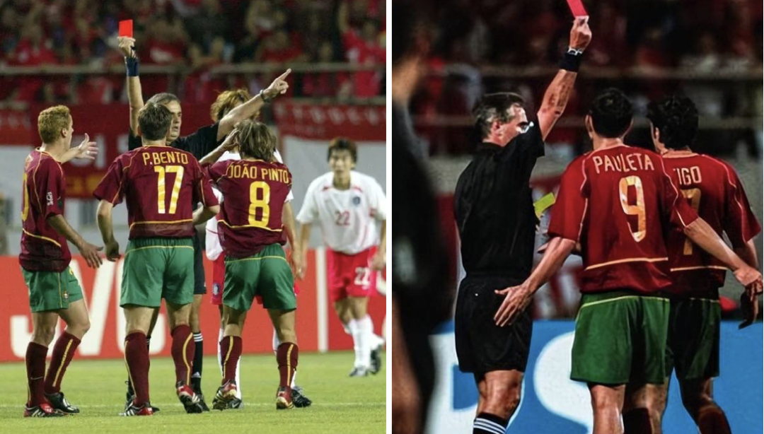 **17、縱觀世界盃歷史,韓國隊和葡萄牙隊有恩怨。**02年韓日世界盃,兩隊比賽時衝撞不斷,葡萄牙隊被罰下兩人,第二張紅牌罰得頗有爭議。最終葡萄牙9人打韓國隊11人沒打過,菲戈領銜的黃金一代直接爆冷淘汰。這樑子就結下了…