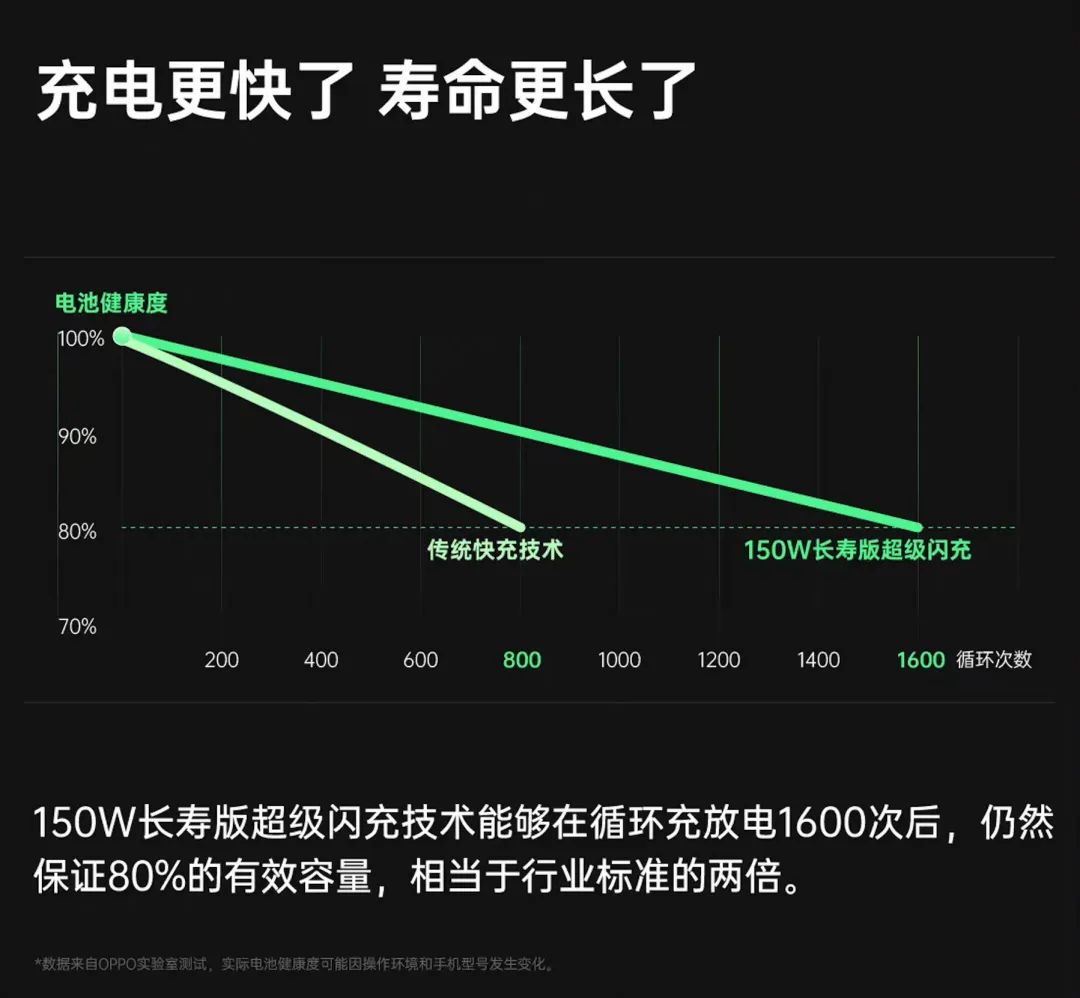 像綠廠前陣子推出的長壽版 150W 快充,就已經能夠做到循環充電 1600 次後,電池仍能保持 80% 的有效容量: