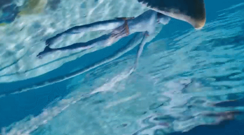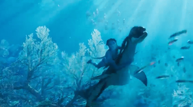 影片中,水下世界不僅僅承擔着視覺觀賞作用,它還是重要的戰場。