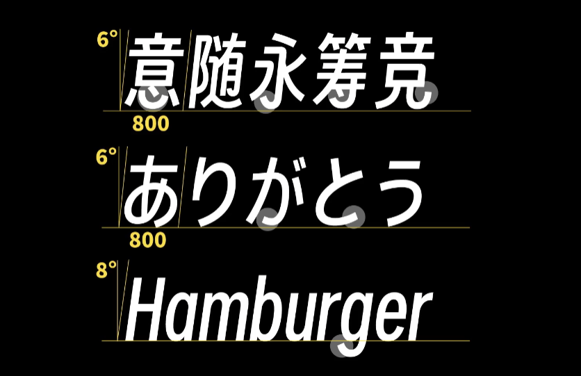 弧形、窄體、傾斜,這三個 buff 疊起來,可見設計每一個字需要考慮到的工作量有多大。