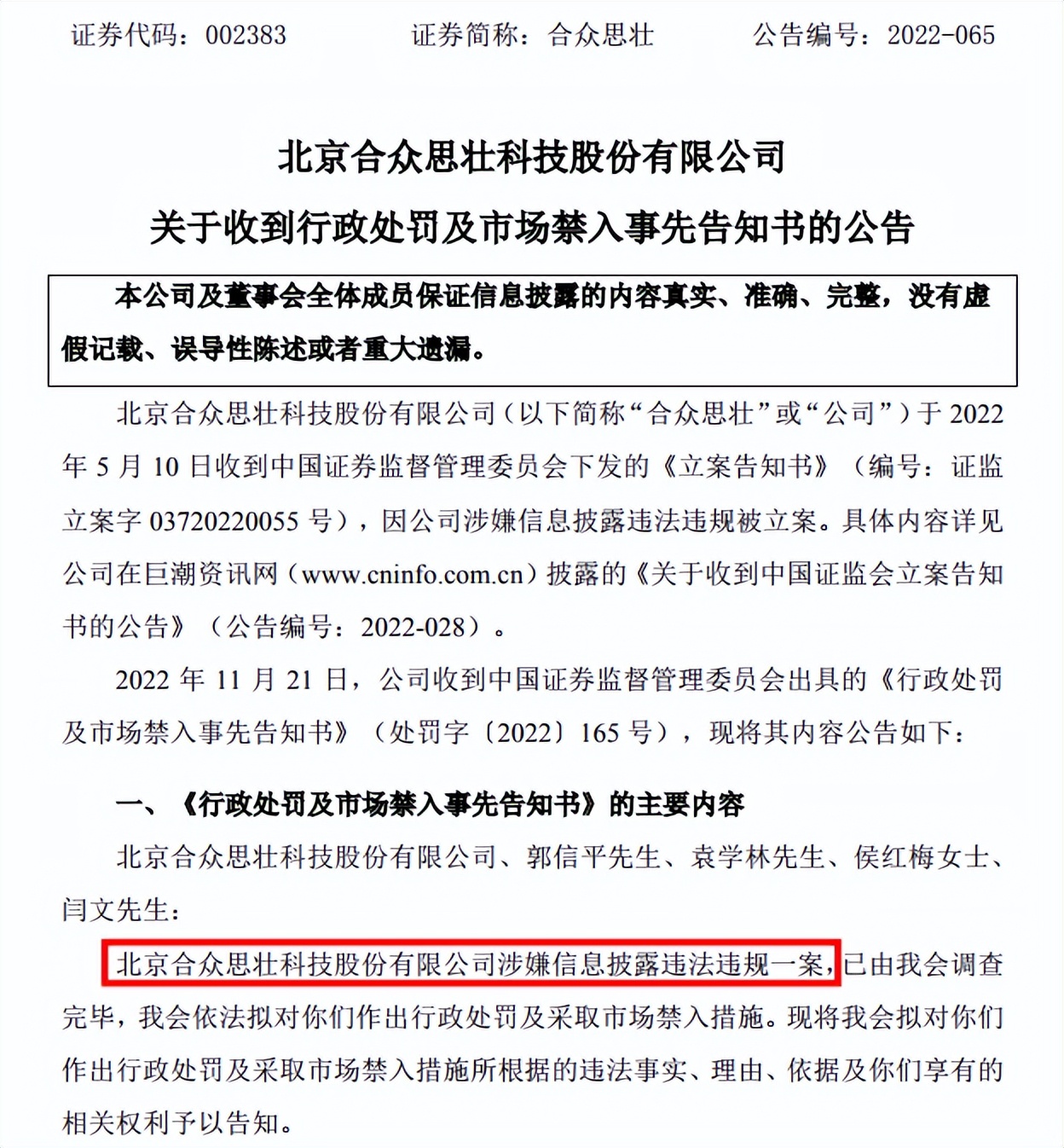 11月22日,合眾思壯披露《關於收到行政處罰及市場禁入事先告知書的公告》,公司涉嫌違法的事實就包括:將與隋田力共同投資的聯營企業北斗導航科技有限公司作為專網通信業務運營平台,與隋田力指定企業開展自循環業務。