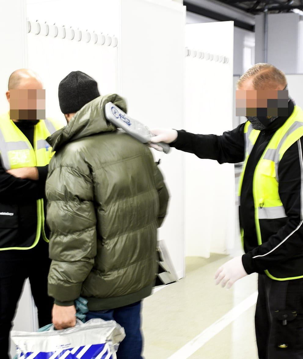 難民庇護所入口處正在對難民進行安檢