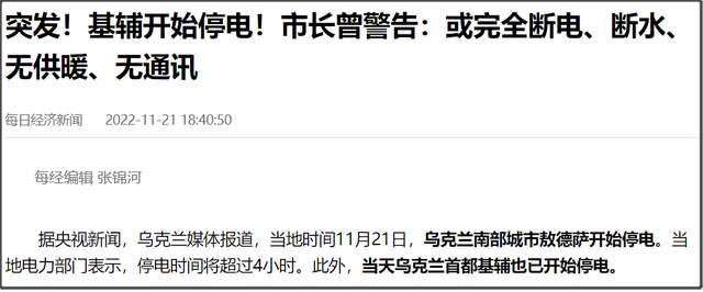 最近基輔和敖德薩這些烏克蘭大城市,已經開始出現頻繁停電,這個一方面是烏克蘭已經入冬,基輔也下雪了,開始有供暖壓力。