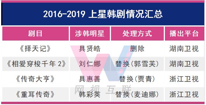 ****網視互聯(ID:wxs360)統計發現,自“限韓令”實施後,只有4部涉韓國產劇上星播出,且全部替換或者刪掉了韓國藝人的戲份,無一例外。