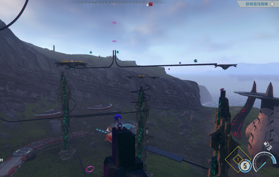 為了填充遊戲裏的超大地圖,同時也是為了給予玩家足夠的探索內容,製作組將索尼克系列傳統的跑酷體驗搬到了這個開放區域之中,以海量的迷你裝置不停刺激着玩家的遊玩慾望——當然,這些憑空而建的設備看着確實出戏,但只要數量足夠多,多到讓玩家逐漸形成“見怪不怪”的感受時,便會由量變轉化為質變。當玩家爬上高處,眼前望不到邊際的可遊玩內容,總有那麼一兩個會設立在前往目標的路上。