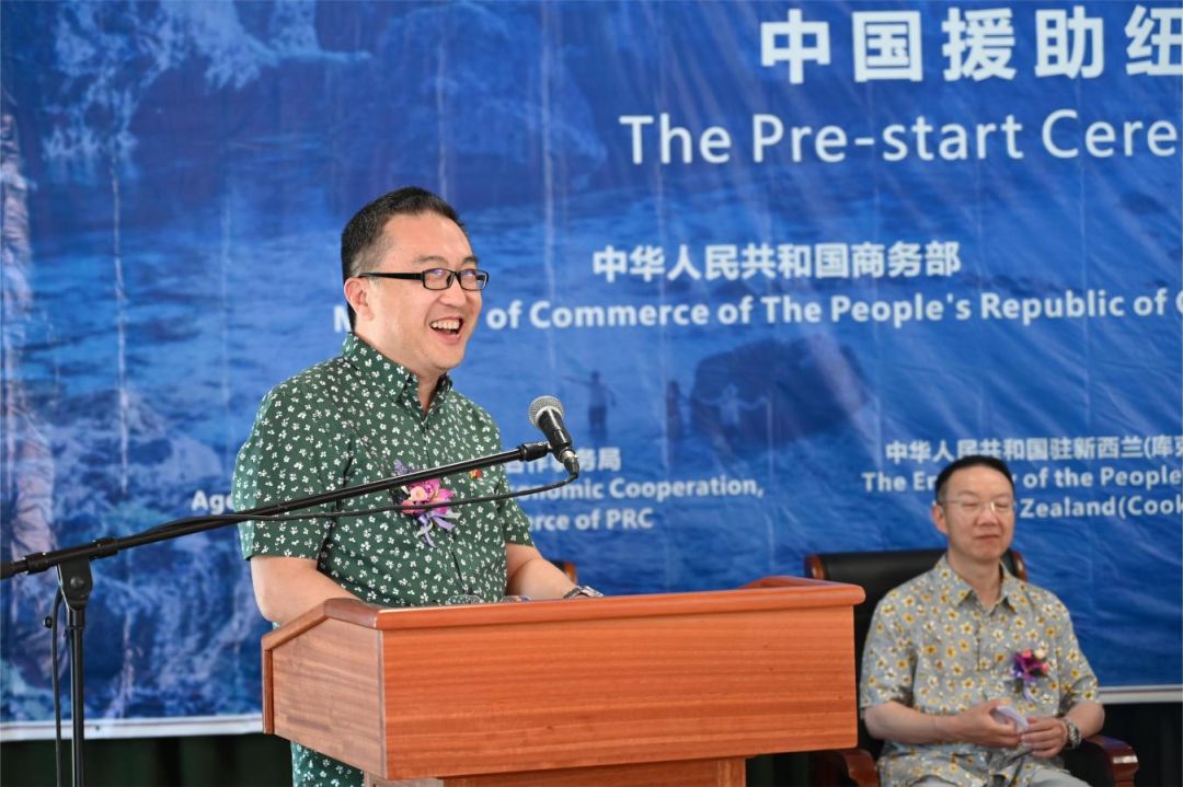 致辭結束後,在塔格拉吉的見證下,王小龍和紐埃基礎設施部長塔圖伊為項目預啓動儀式揭牌。
