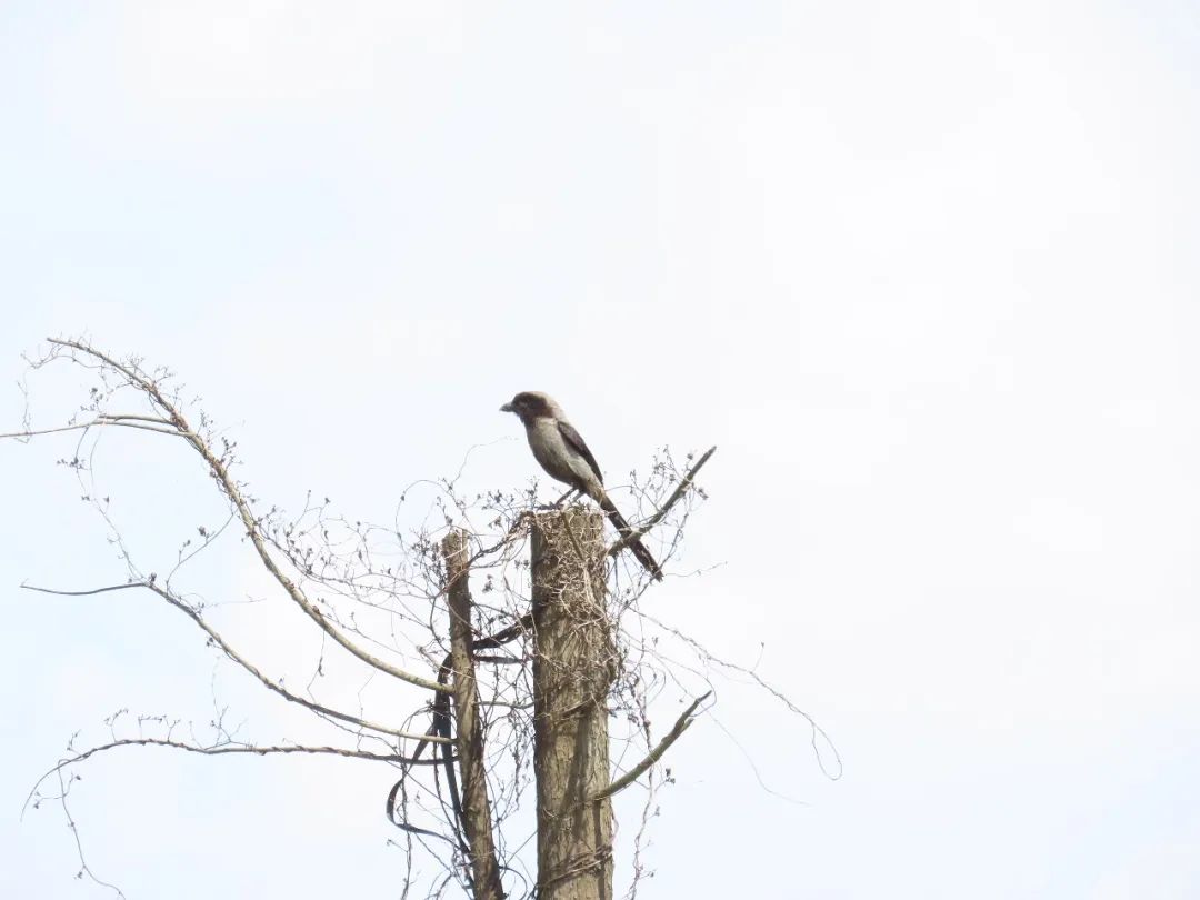 棕背伯勞在我印象中特徵明顯,背部是紅棕色,有一圈“眼罩”,很好認。但這隻黑化型的是我拍到的第一隻棕背伯勞。棕背伯勞是有名的“串串大佬”(會把獵物穿在枝刺上串起來),可惜我從未見過它們獵食的場景。