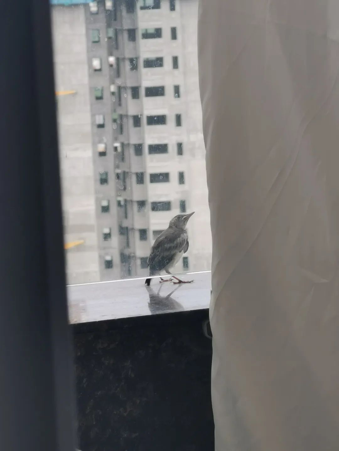 有一天,一隻小鳥停在了我家陽台邊上,一動不動站了好久,我一靠近它就往外挪。為了不嚇跑它,我到一個能看見陽台的房間蹲守了半小時,看着它在陽台邊來回走動,還拉了幾泡屎。