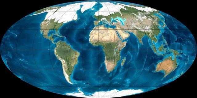10000年前第四紀冰期鼎盛時期全球冰川分佈示意圖