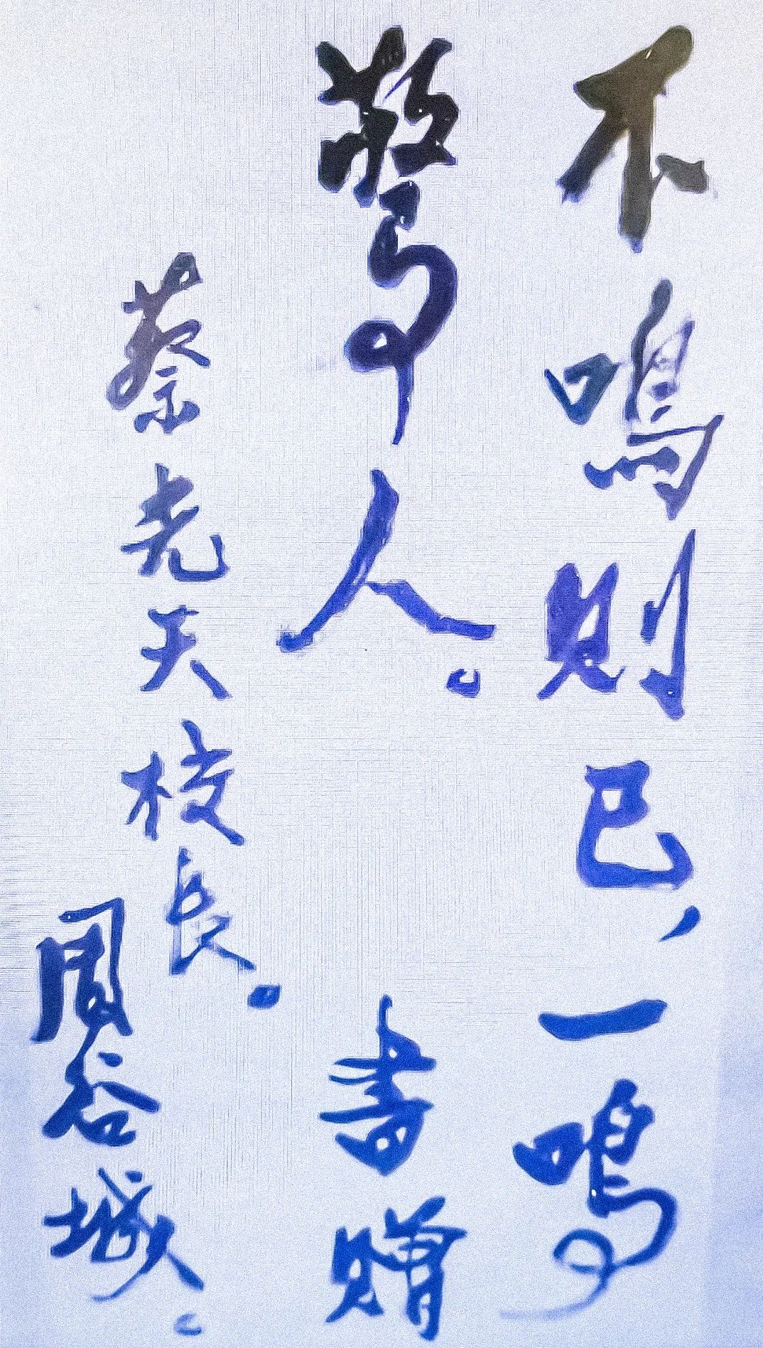 • 周谷城為蔡光天題詞“不鳴則已,一鳴驚人”。