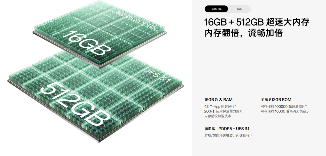 值得一提的是,OPPO 這次還給 Reno9 用上了 16G 的大內存,官方宣稱最高能做到 42 個應用同時打開,流暢在後台來回切換。