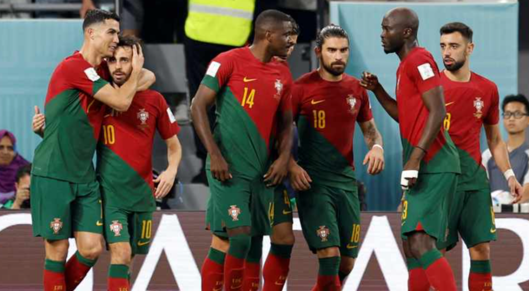 萊奧讓葡萄牙3比1領先,射門瞬間還在咧嘴笑;加納進球后被換下的阿尤,氣得齜牙咧嘴: