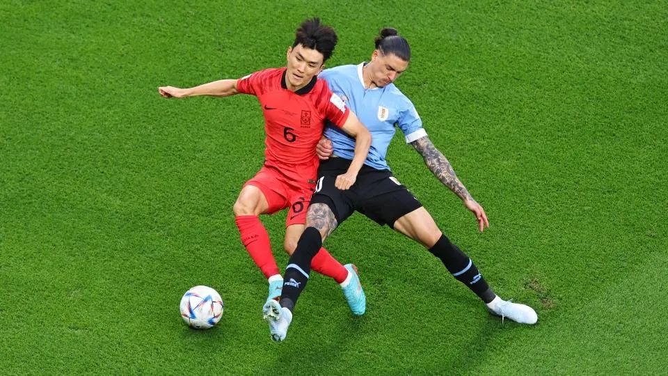 韓國陣不寬,所以烏拉圭老尋思:斜長傳找外線撈一個。