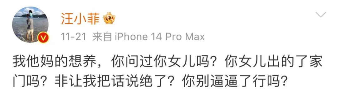 粗粗統計了一下汪小菲發博的高頻情緒詞,代表主要有**《別逼逼》《他M的》《我不怕》《真噁心》《別惹我》《傻B玩意兒》**,其中《別逼逼》一次出現次數最多,累計超10次。