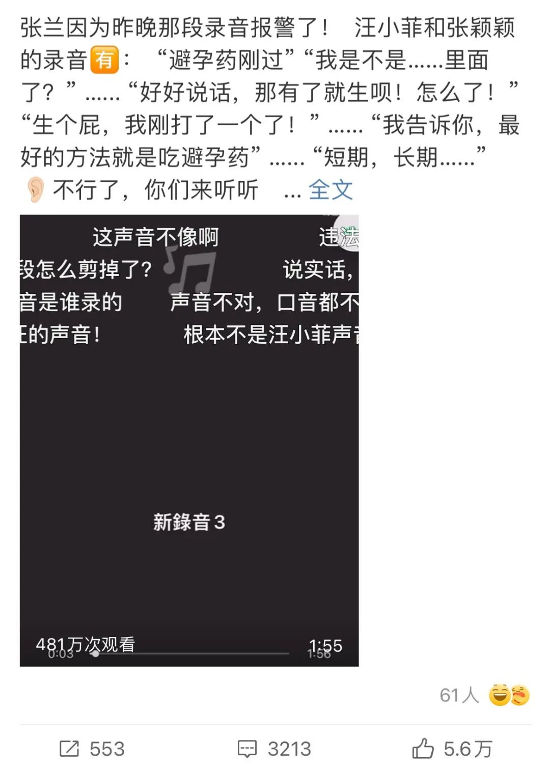 目前,張蘭因為疑似汪小菲和張穎穎之間的錄音泄露,果斷報警了。