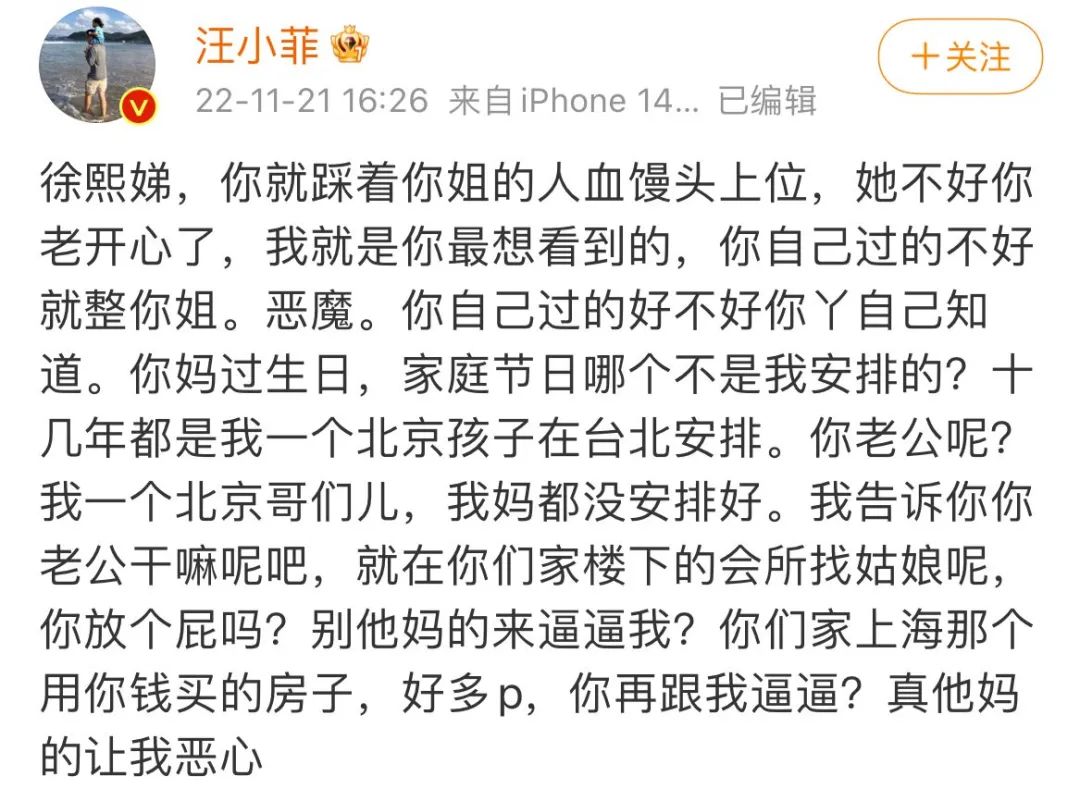 因情緒過於激動,導致汪小菲出現語無倫次症狀,多數網友看完他編輯了又編輯的微博仍一頭霧水:這是表達了個啥?