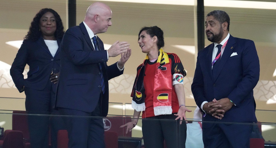 我在上篇文章裏,説卡塔爾跟俄羅斯一樣,反同性戀嘛。這激怒了歐洲,弄了個袖標,也就是下圖比利時女外交部長(中間那個女的)胳膊上戴的那個,用來支持同性戀順便譴責卡塔爾。