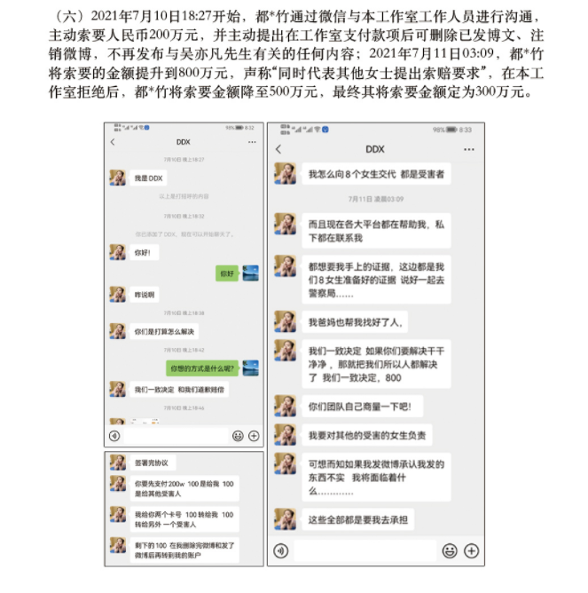 其公關團隊一開始就把都美竹往“敲詐勒索”的罪名上引。