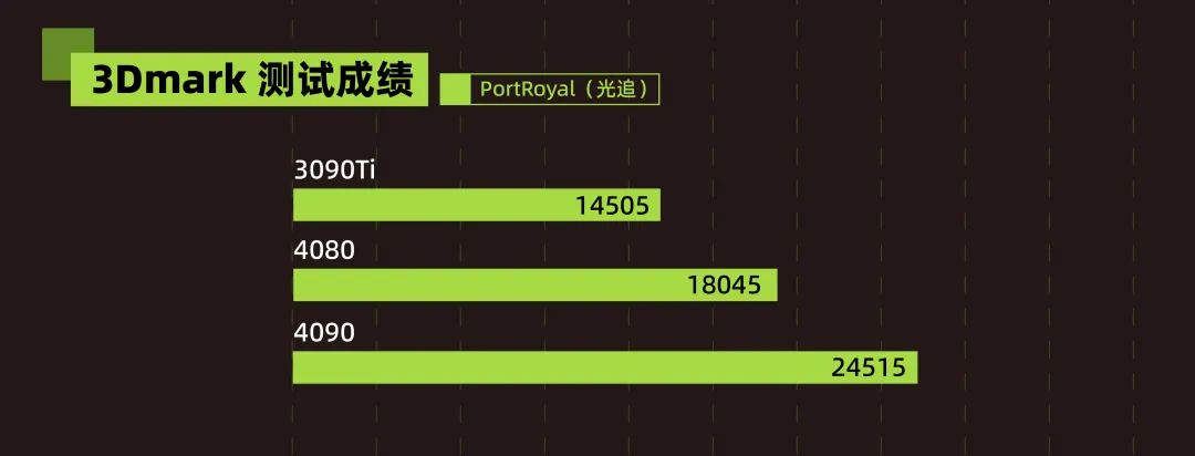 除了傳統圖形部分的改進,4080 還用更少的光追核心,把3090Ti的光追性能甩開了一大截。