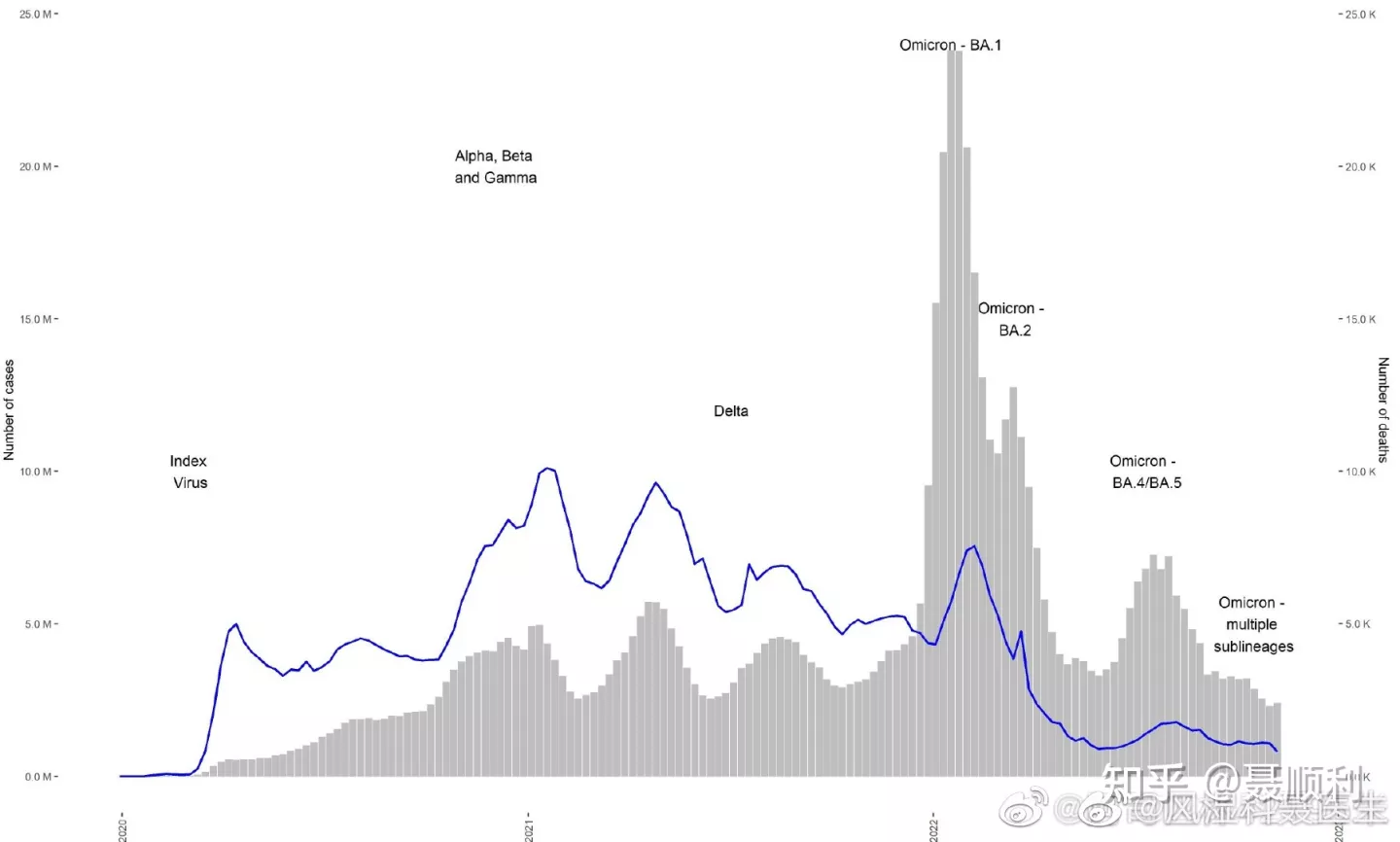 實際上,我們上面提到的都是個體殺傷力。Omicron的傳染性較前有大幅度增加。這就導致了它偏離直覺的:單個殺傷力下降,羣體殺傷力上升。