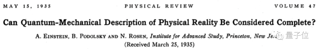 1935年,愛因斯坦、波道爾斯基和羅森三人聯名,在物理評論快報上發表了一篇題為《能認為量子力學對物理實在的描述是完全的嗎?》(Can Quantum-Mechanical Description of Physical Reality Be Considered Complete,簡稱EPR)的論文。