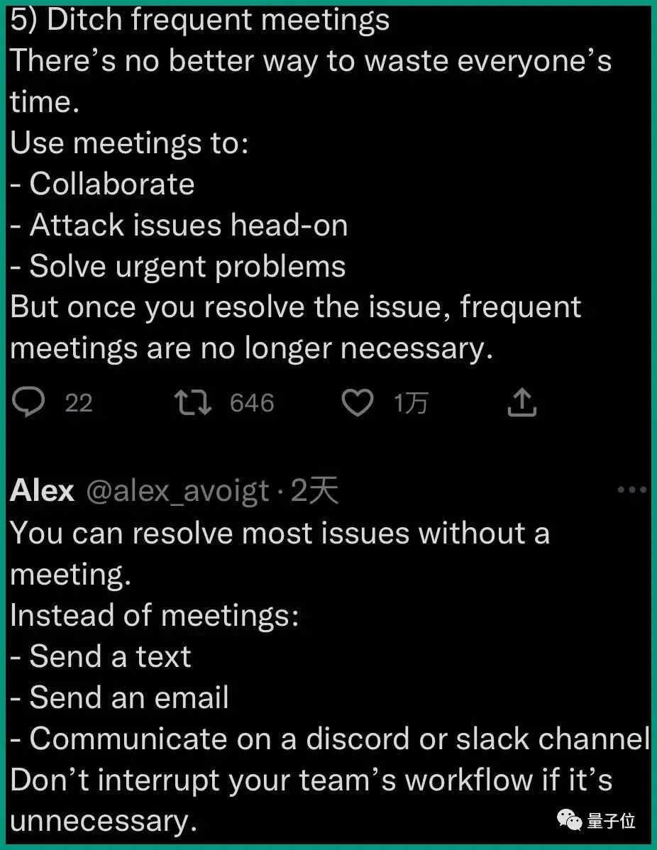 這些建議整體來看,矛頭均指向一件事——開會,Alex將它們歸結為了6大點。