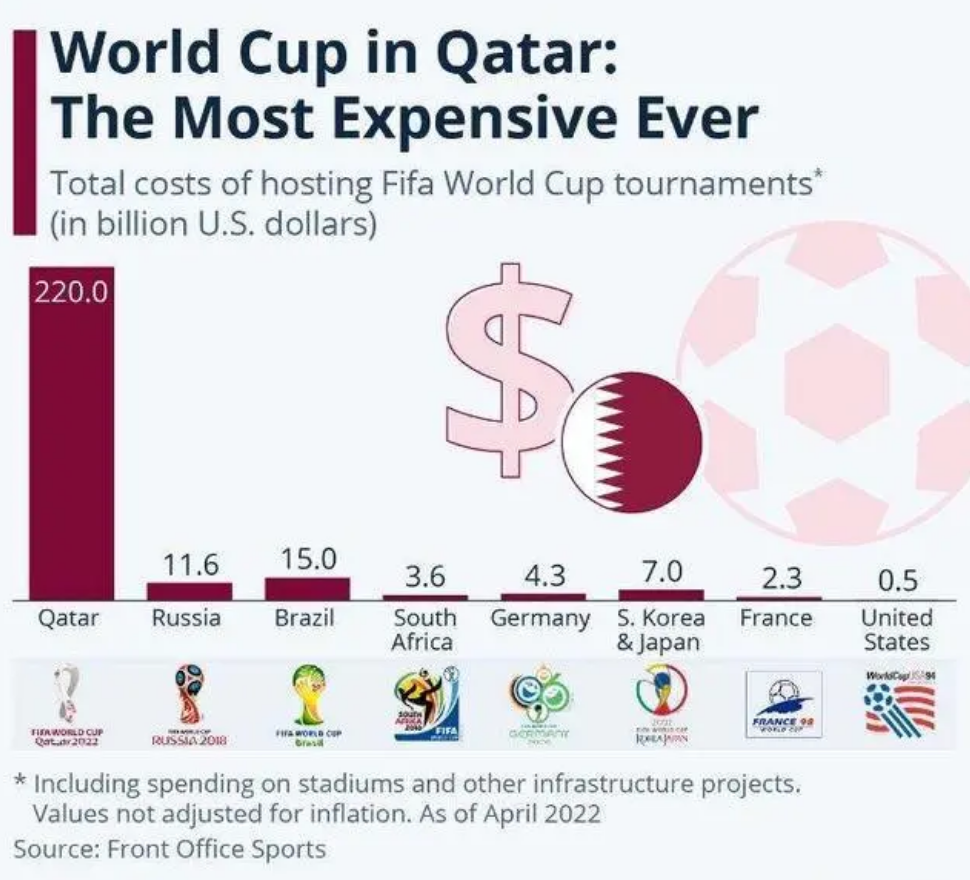 2200多億美元的投入,超過所有歷屆世界盃投入的總和。