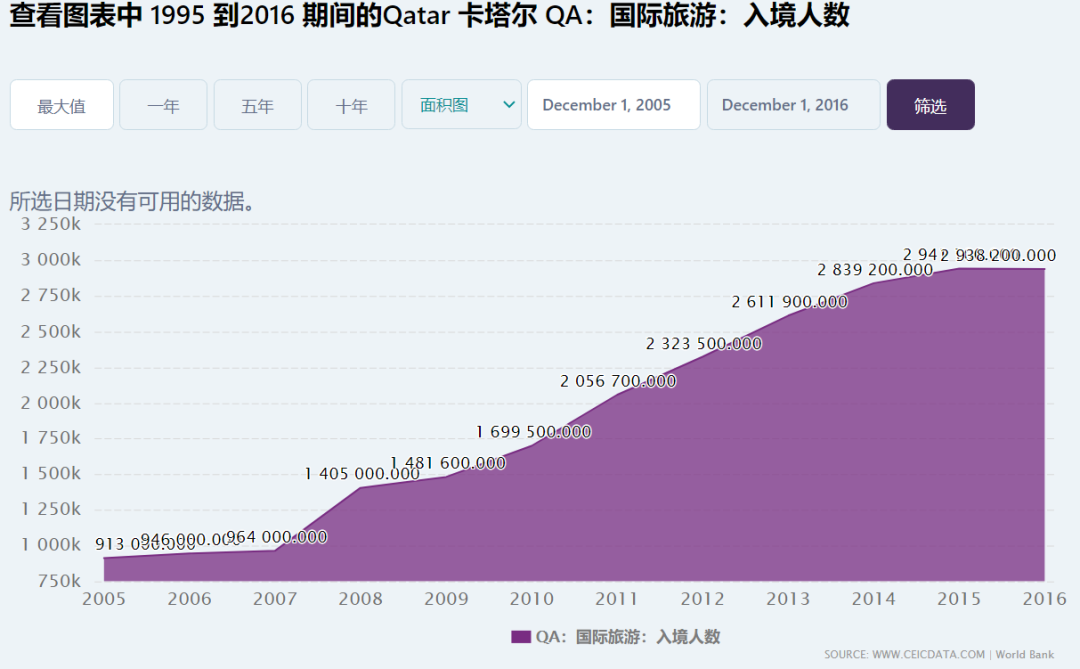 卡塔爾的旅遊行業在近些年一直迅猛上升 圖據世界銀行