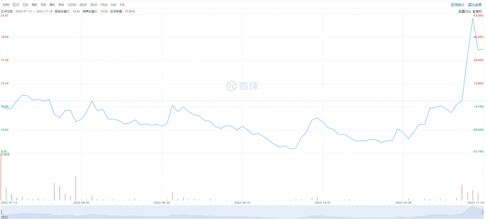得益於利潤端的優異表現,名創優品自財報發佈後,其股價一路高開高走。而在11月17日當天,股價更是達到自今年7月份上市以來的最高點21.91港元/股。
