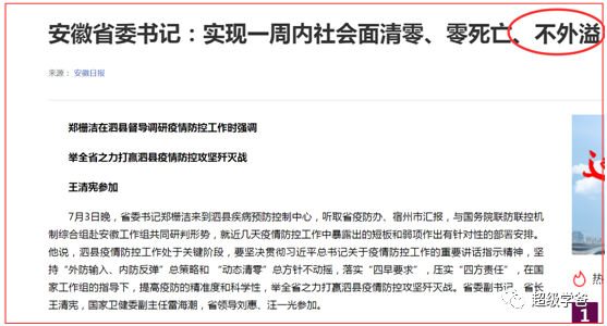 在這一方面,安徽最近做的不錯。比如今年7月,安徽省委書記親臨泗縣、靠前指揮,要求阻斷傳播鏈條,全力救治病人,實現一週內社會面清零、零死亡、不外溢。