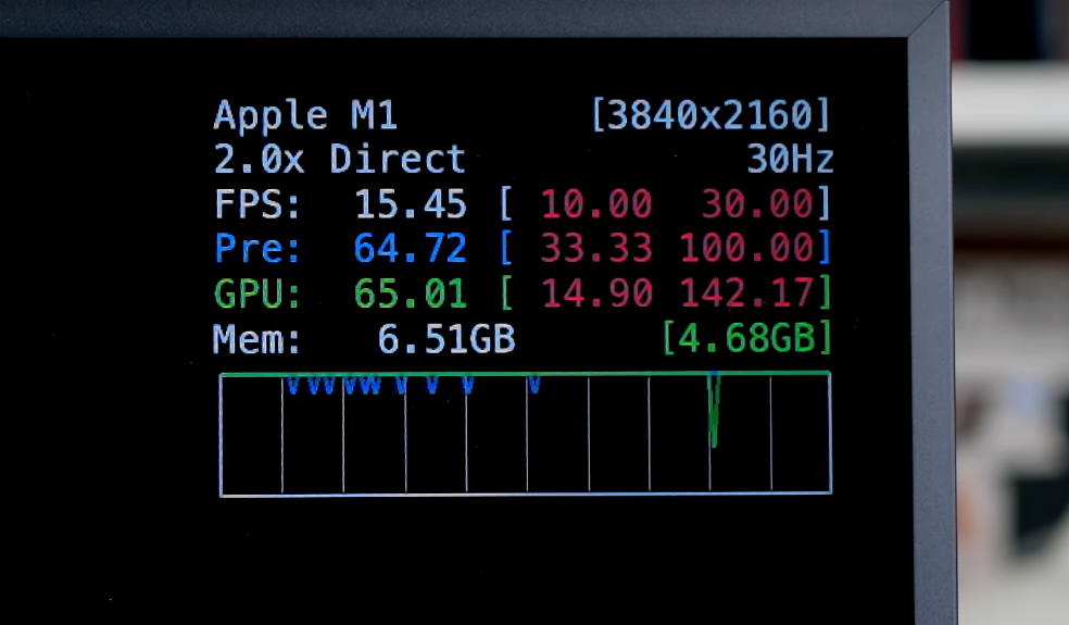 一幀能玩,兩幀電競。M1跑4K居然還能有10幾幀。