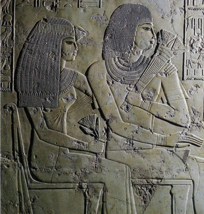 更有趣的是,在Mai and his wife浮雕中,Mai和妻子的大小是差不多的,而在貴族khnum hotep的壁畫裏,妻子只到他的腿部,反映出了妻子在家庭裏不同的地位。