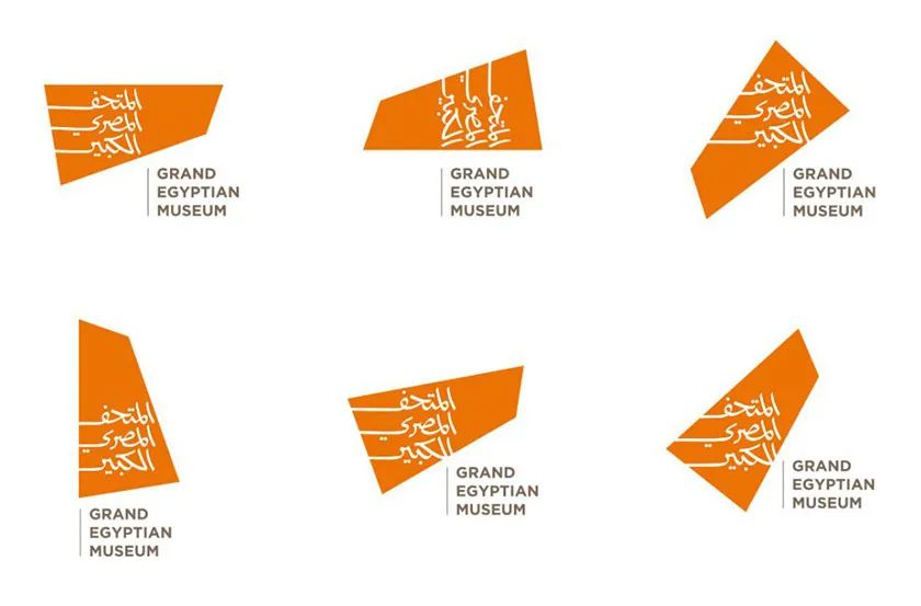 設計靈感來自大埃及博物館建築俯視的形狀,圖形內部是經過定製的“大埃及博物館”阿拉伯書法字體。