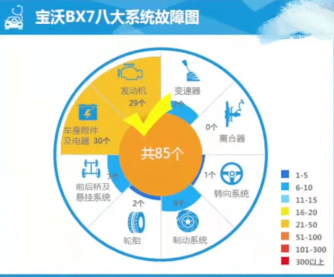 有車主發現BX7的發動機噪音大、油耗高、異響抖動。從第三方網站看,BX7的用户滿意度評分低於平均水平。
