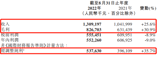 利潤方面,中國春來同樣表現得不俗。2022財年,公司的毛利為8.27億元,同比增加30.9%,毛利率也由上年同期的60.6%提升至63.1%。報告期內,公司實現經調整純利5.38億元,同比上漲35.7%。