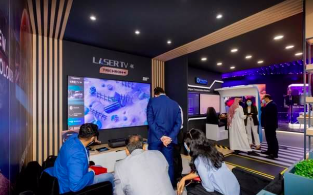 在中東,當地人偏愛金色,海信就為激光電視專門定製了可移動的金色畫框。