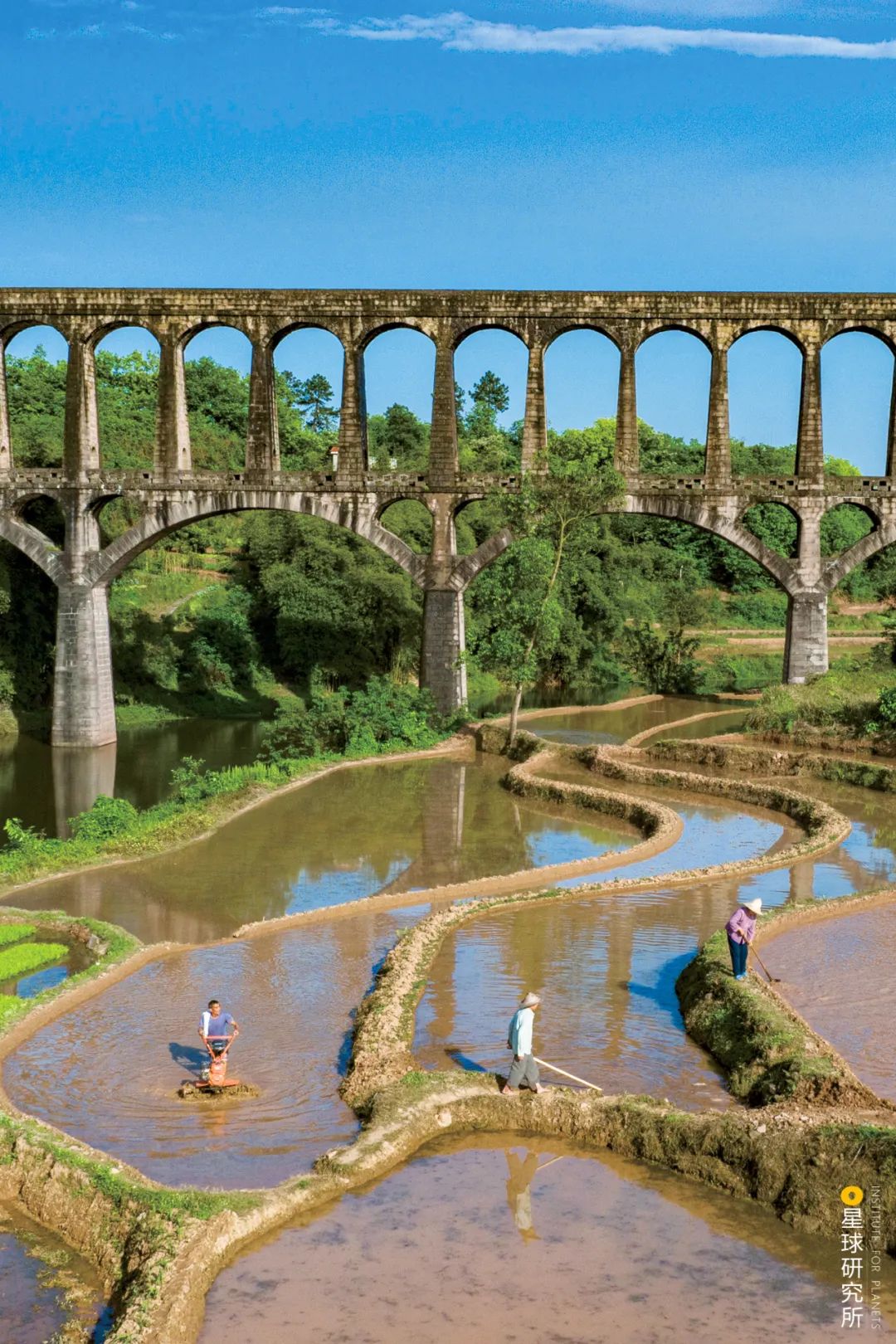 瀘縣奇峯渡槽,石拱橋樑跨越山丘,一頭連接農田,一頭連接水庫**** | 攝影師@王清友