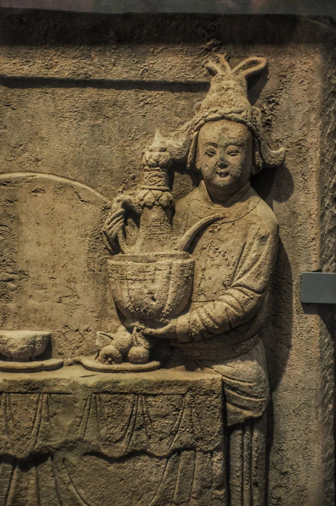 宋代石刻,圖中侍女手持酒瓶**********************,藏於瀘縣宋代石刻博物館********************** | 圖片來源@視覺中國
