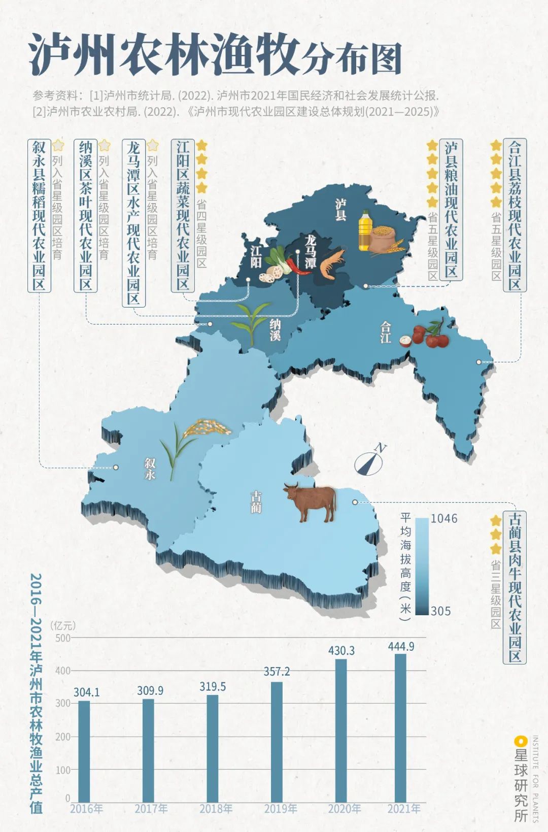 瀘州農林漁牧分佈圖與年度產值,川南魚米之鄉特指瀘縣 | 製圖@王天怡&吳昕恬/星球研究所
