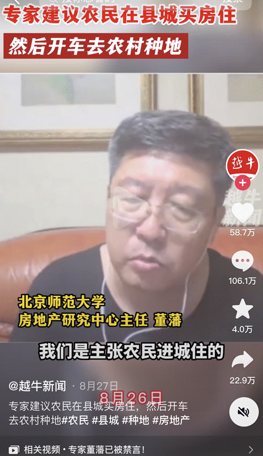 這彷彿是北師大房地產研究中心的主任董藩,那個“農民該進城買房、開車回去種地”的建議一樣。