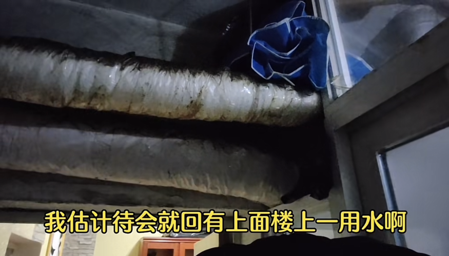 屋頂也被各種水管穿過,樓上一用水就噼裏啪啦的響聲不斷。